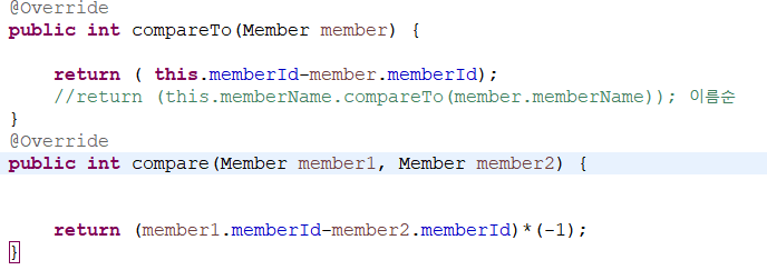 근데 만약 순서를 내림차순으로 변경하고 싶으면 Comparator 인터페이스를 이용해야 한다. 작성법은 다음과 같고
