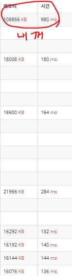신긴한게 맞았다.... 그리고 980ms가 떴다.... 맞았지만 시원하지가 않았다. 다른 사람들꺼는 200이하가 많던데...