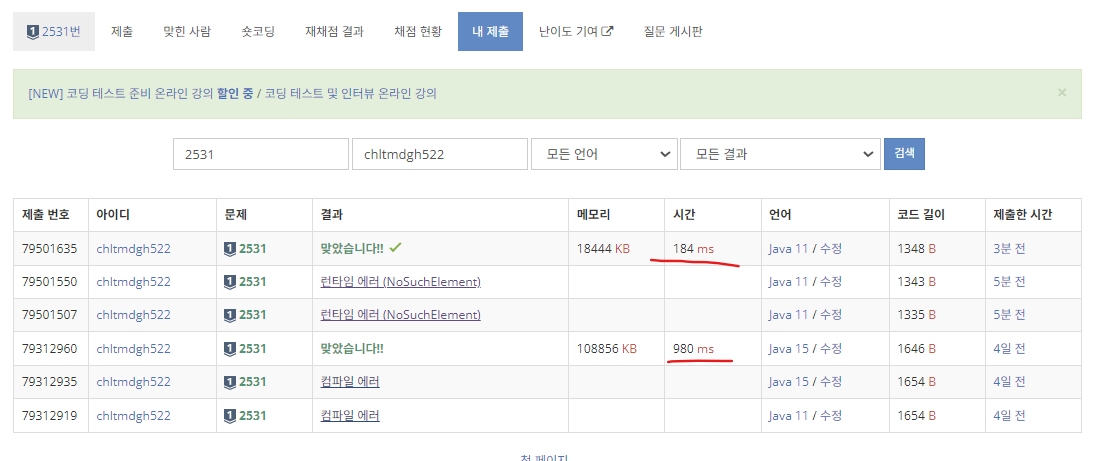 이렇게 해서 제출을 했지만 솔직히 시간초과가 뜰줄 알았다. 왜냐하면 N 이 30000개 이하까지 허용되고 k도 3000이니깐