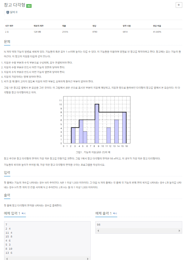 https://www.acmicpc.net/problem/2304