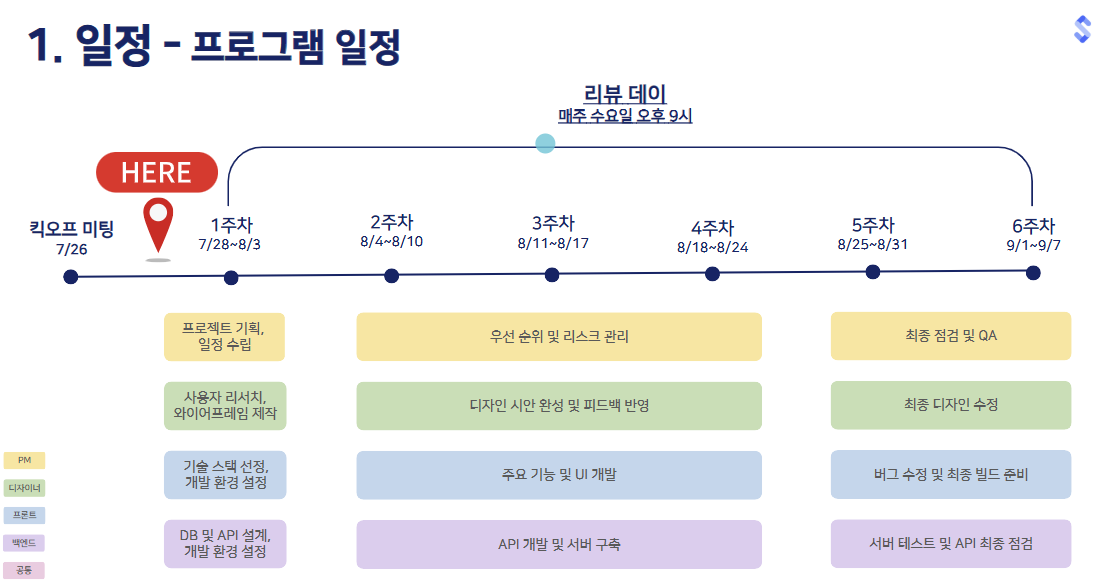 구성은 PM 1명, 디자이너 2명, 앱 개발자 2명, 백엔드 개발자 2명으로, 역할이 고르게 분배된 팀이었습니다.