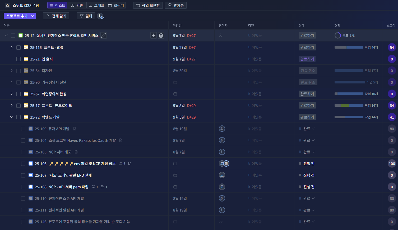 다른 팀의 경우 PM 직군이 없거나, 중간에 팀을 떠난 사람도 많았다고 들었습니다.