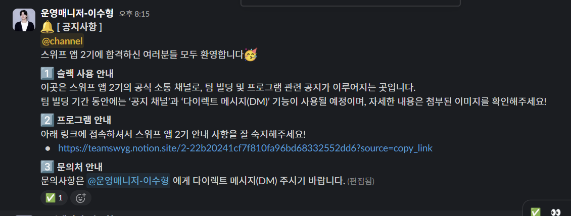 이번 스위프 앱 2기 활동을 통해 가장 크게 느낀 점은 ‘팀을 잘 만나는 것이 정말 중요하다’는 것이었습니다.