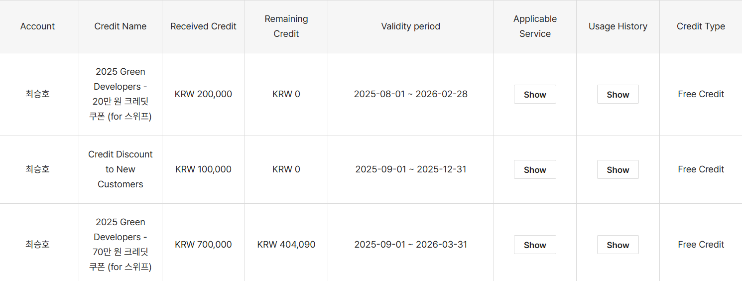 특히 서버 비용을 전액 지원받을 수 있다는 점이 큰 메리트였어요.