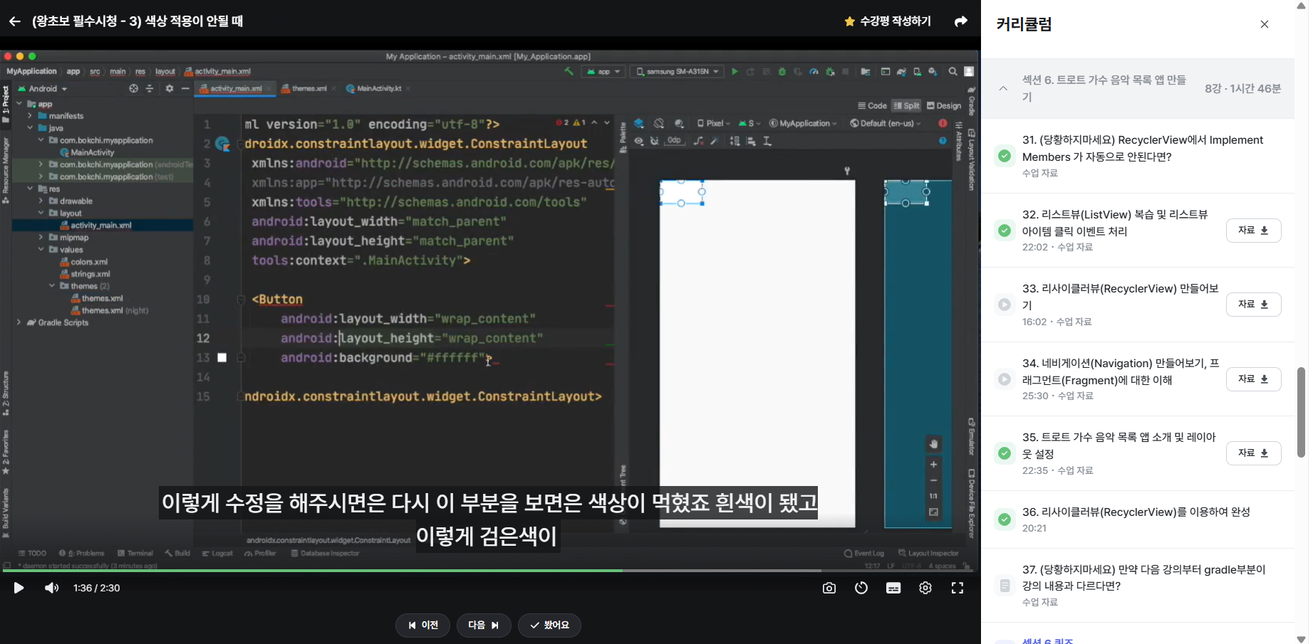 당연히 쉬운 길은 아니었다. 인프런에서 Android 강의를 구매했다. 앱 개발에 대한 기본기가 부족했기 때문에 1주일 동안 빡세게 강의를 듣고 개발하려는 계획이었다.