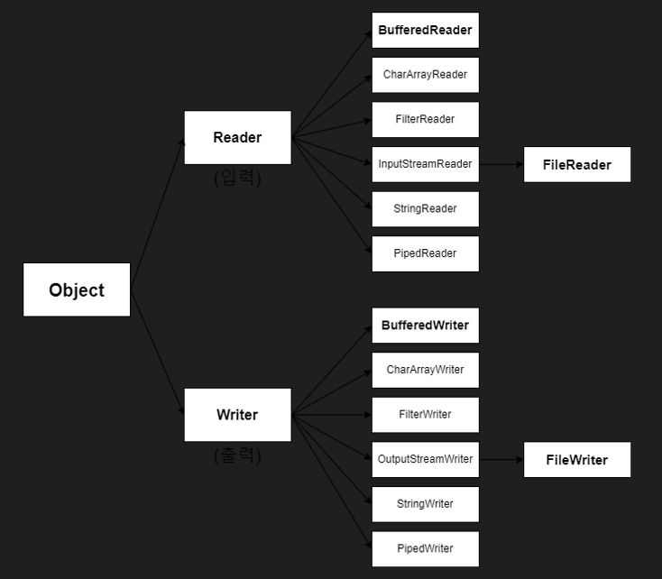 추상 클래스 Reader, Writer를 상속하여 구현한다.