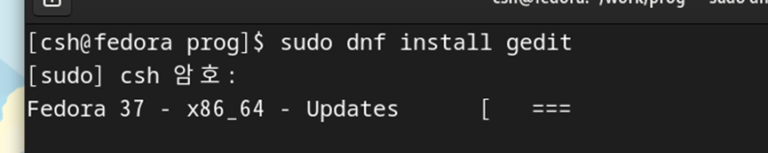 쓰기 모드를 확인할때는 gedit을 실행해줘야되는데 설치가 안되어 있어서 다음명령어와 같이 설치중이다.