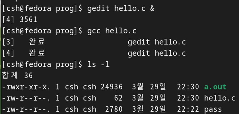 gcc를 통해 컴파일러를 하고 생성된게 a.out이다.