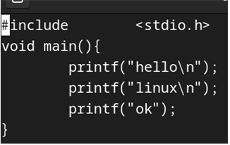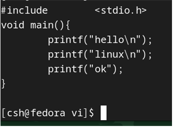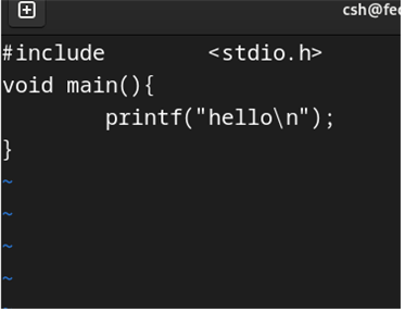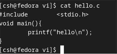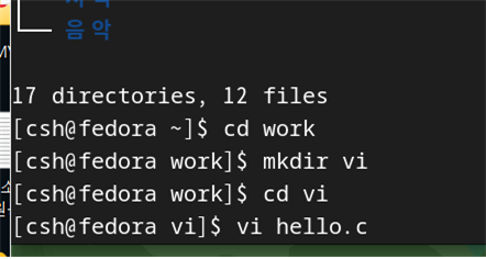 다음과 같이 vi 디렉토리를 만들고 편집하기 위해서 vi hello.c를 실행한다.