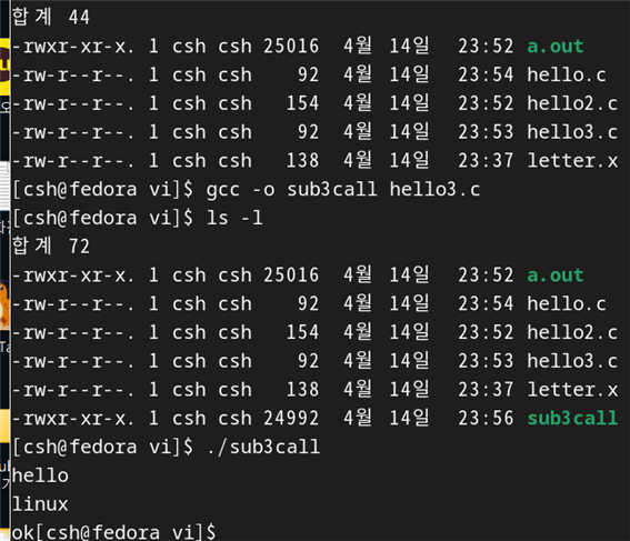 다음과 같이 hello2.c의 내용을 수정하였다.