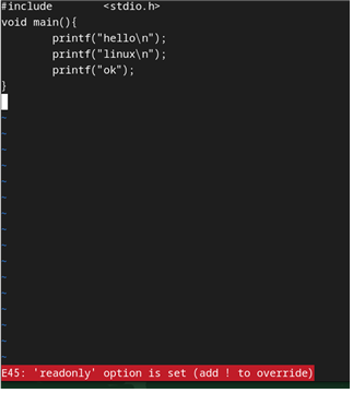 이때 w의 기능을 지워서 :w 의 저장이 안된다. 따라서 강제 저장할려면 :w! 느낌표를 붙여줘서 종료시키면된다.