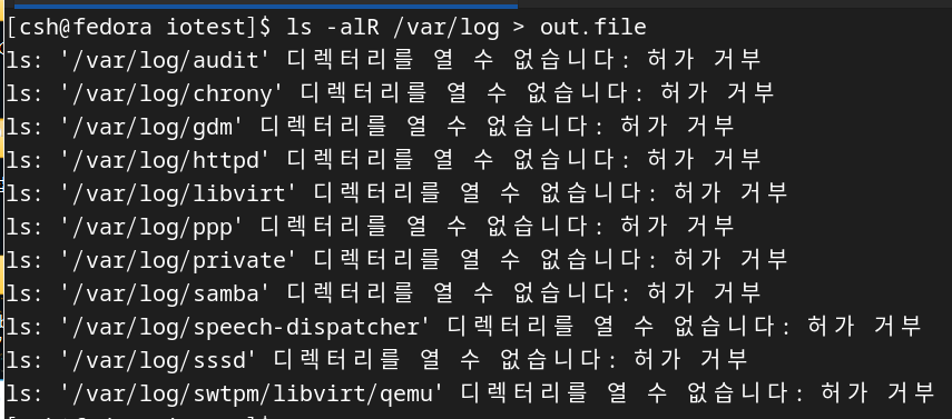 stderr에서 표준오류라고 설정해놔서 리다이렉션하자마자 error 가 뜬다