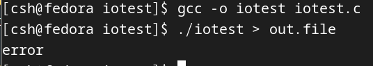 iotest.c 의 컴파일을 iotest로 하고 그 내용을 out.file에다가 갖다주었다 이떄