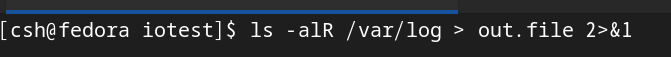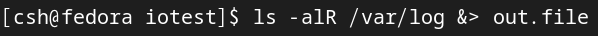 "/var/log" 디렉토리와 그 하위 디렉토리에 있는 모든 파일과 디렉토리를 재귀적으로 나열하고, 각 항목의 상세 정보를 포함하여 표시한 후, 이를 "out.file"이라는 파일로 리다이렉션하는 명령입니다.