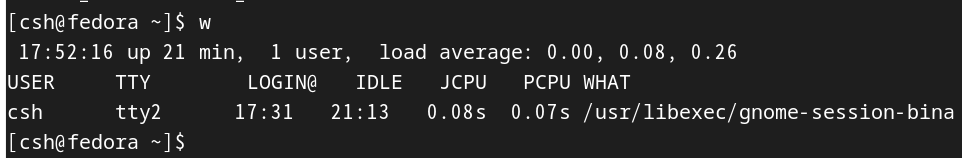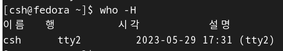 로그인 사용자 목록과 실행하는 작업을 출력한다.