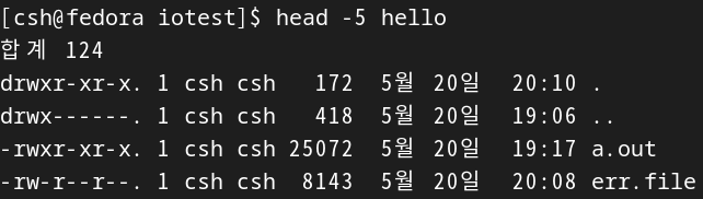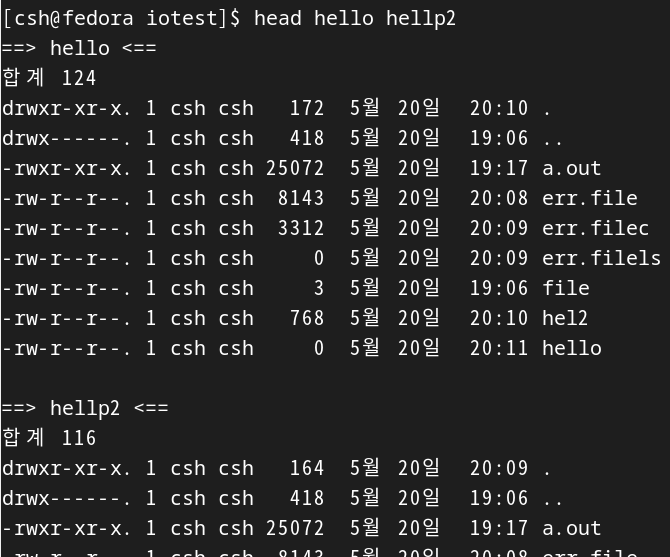 hello 내용에서 파일크기하고 이름만 출력한 것이다.