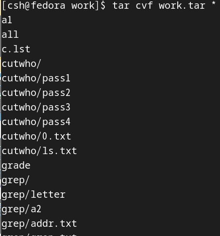 다음과 같이 work.tar를 압축했다.