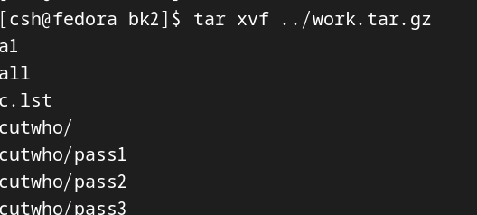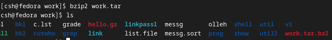 bk2 디렉토리에서 work.tar.gz를 풀어줬다. gunzip하면은 work쪽에서 gz가 없어진다.