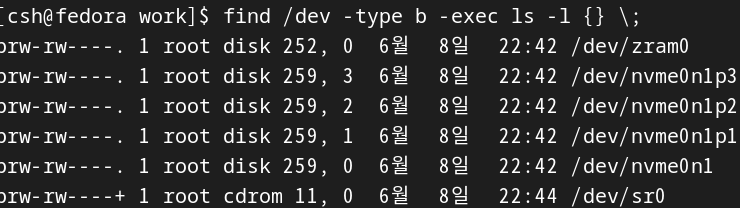 /dev 장소에서 타입이 블록장치 인것을 찾아준것이다.
