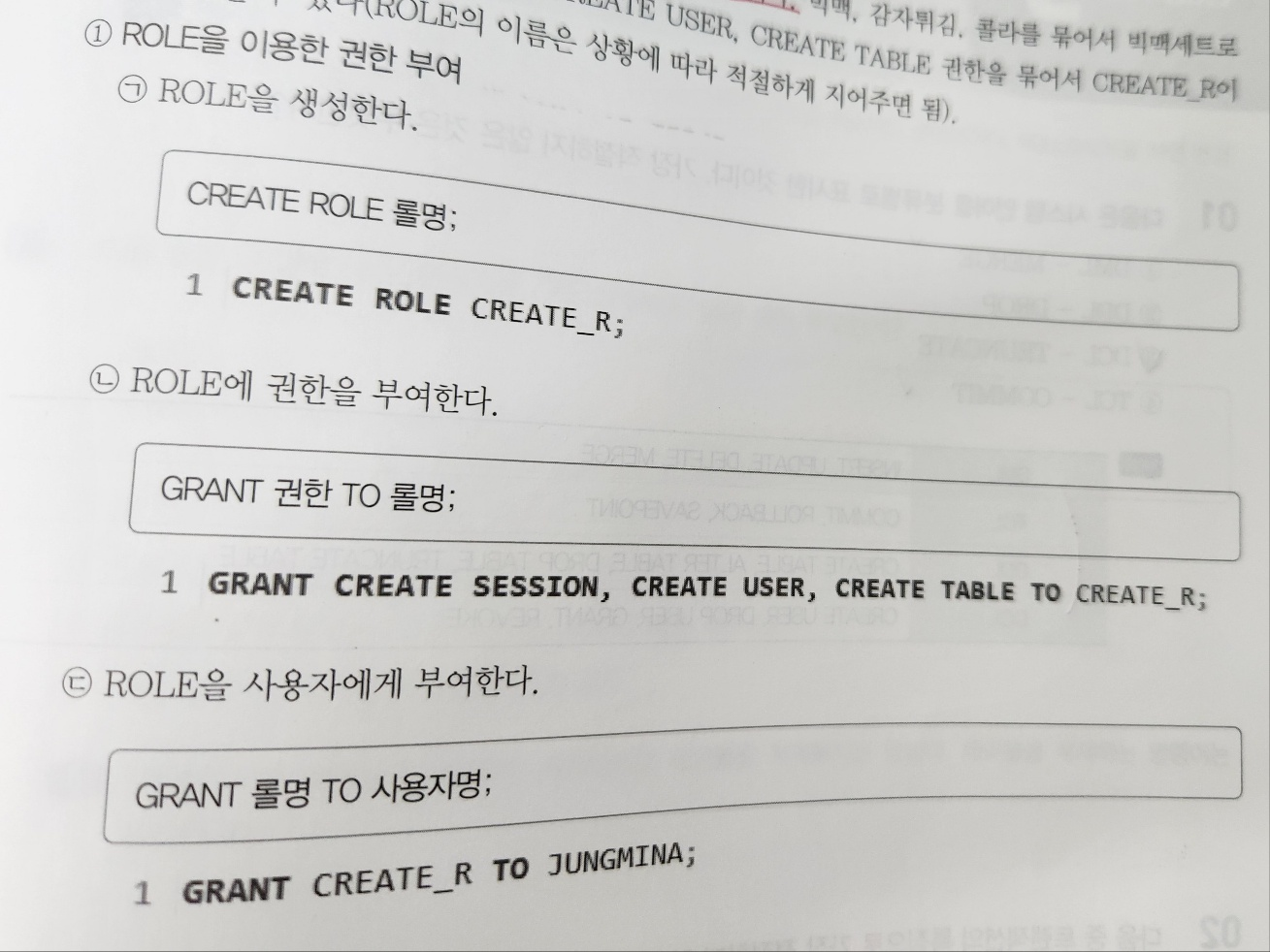 ROLE이란 특정 권한들을 하나의 세트처럼 묶는 것이다.
